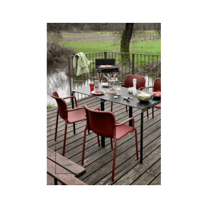 MOMO 2 es la versión que integra la pareja de apoyabrazos siguiendo la silueta de la estructura, amoldándose a la misma sección y resaltando el porte del producto. Este conjunto acentúa la particular característica estética de esta colección, o sea la ingeniería en los ensambles. La parte superior de las patas traseras se moldea para acoplarse a la estructura tubular que soporta la carcasa, en el mismo punto de partida del respaldo. En este proceso de ensamble no se puede distinguir adonde empieza el proceso de fusión ya que no hay alguna marca visible. Además el nombre de la colección estampado en el metal añade un toque de relevancia. El ensamble estructura/apoyabrazos fue concebido para resistir a un grande esfuerzo, dando no solo soporte tradicional para los brazos, pero resistiendo a cualquier solicitación hecha por el peso corporal que se desplaza de una posición sentada a una posición erguida.
