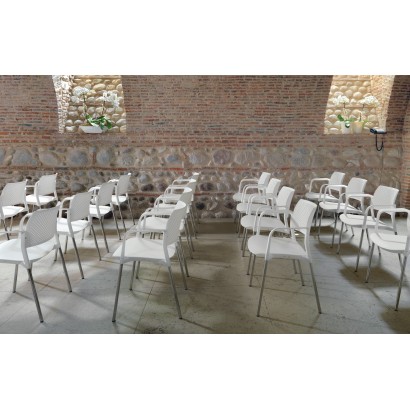 Silla visita Kyos, respaldo y asiento en polipropileno. Estructura gris, en versión cuatro patas. Sin brazos.