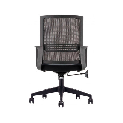 Silla Operativa con Mecanismo reclinable con regulación de tensión, Respaldo Malla y asiento tapizado negro, regulación de altura, base poliamida con ruedas de 50mm para piso duro y brazos fijos.